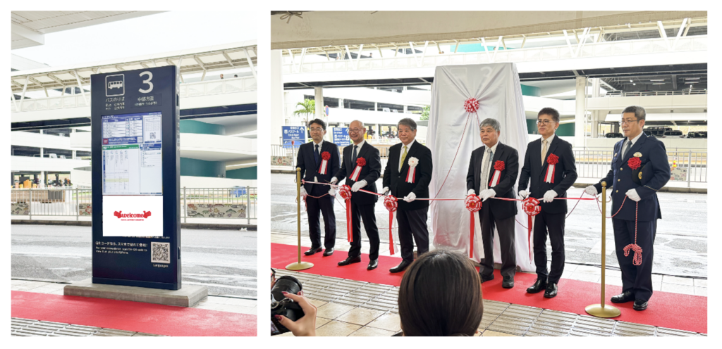 株式会社アザナ(代表取締役社長:田邉 裕貴、本社:沖縄県豊見城市)は、那覇空港ビルディング株式会社(代表取締役社長 照屋義実、本社:沖縄県那覇市)が管理・運営する那覇空港のバス停再編事業で導入された、スマートバス停の「表示システム開発」と「デジタルサイネージ画面デザイン」をいたしました。